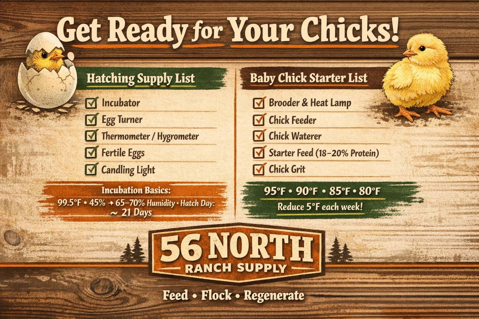 At 56 North Ranch Supply, spring chick season is always one of our favourite times of year. With the right equipment, quality feed, and a little preparation, raising chicks can be simple, rewarding, and a great way to connect with your land and animals.