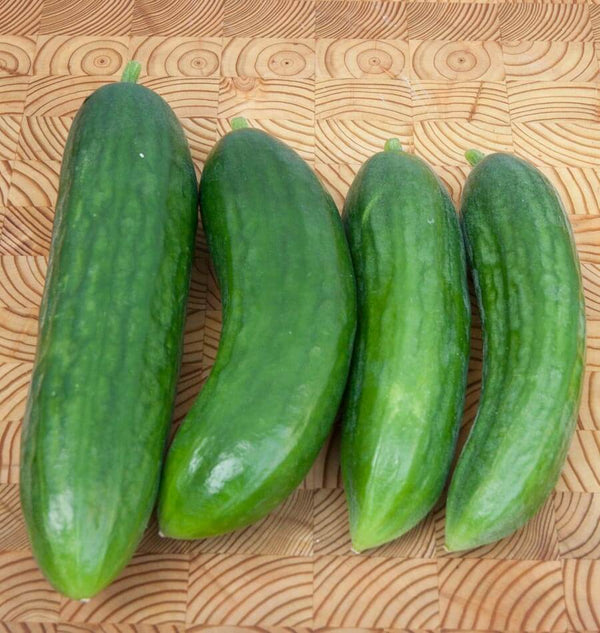 This was a real standout in our cucumber trials for both flavour and productivity. Choose Mercury cucumber seeds for exceptionally early beit alpha type cucumbers. The fruits are 20cm (8") long with thin, shiny, dark skins, and crisp, sweet, flavourful flesh. The seeds are small in a tight seed cavity. Plants are very productive both outdoors and in the greenhouse, but were bred with open field growing in mind. Lots of fruits develop on each plant in one relatively concentrated set. They are suitable for pickling when picked immature, but they make fine slicers at full size.
